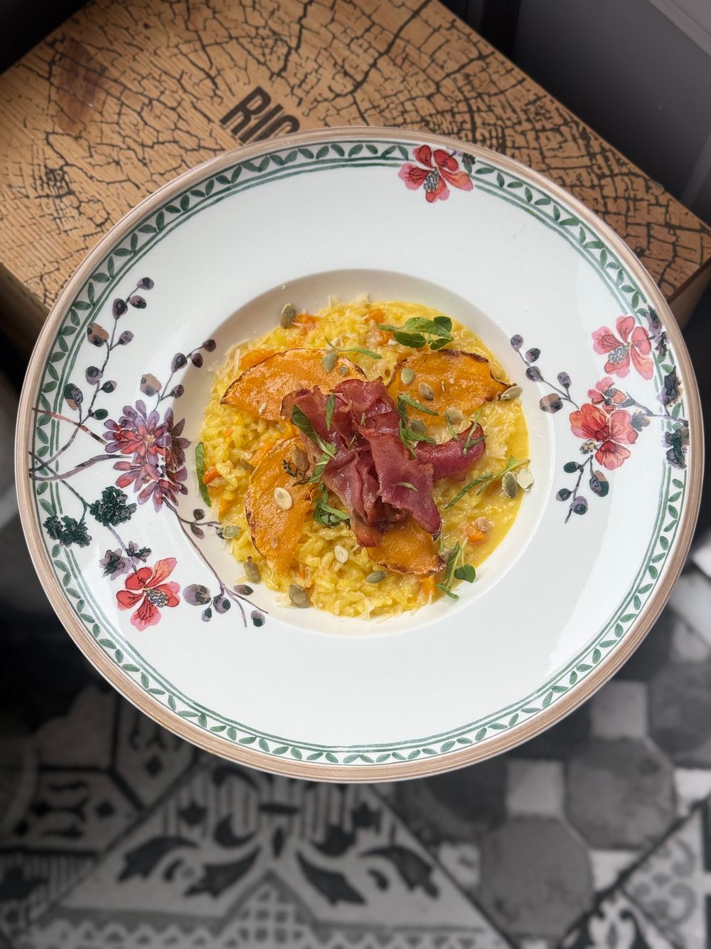 Ризотто с грудинкой, тыквой и сицилийским шафраном