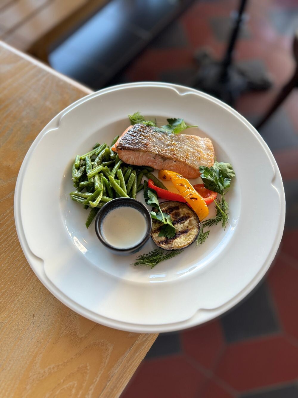 Филе лосося с овощами и сливочным соусом